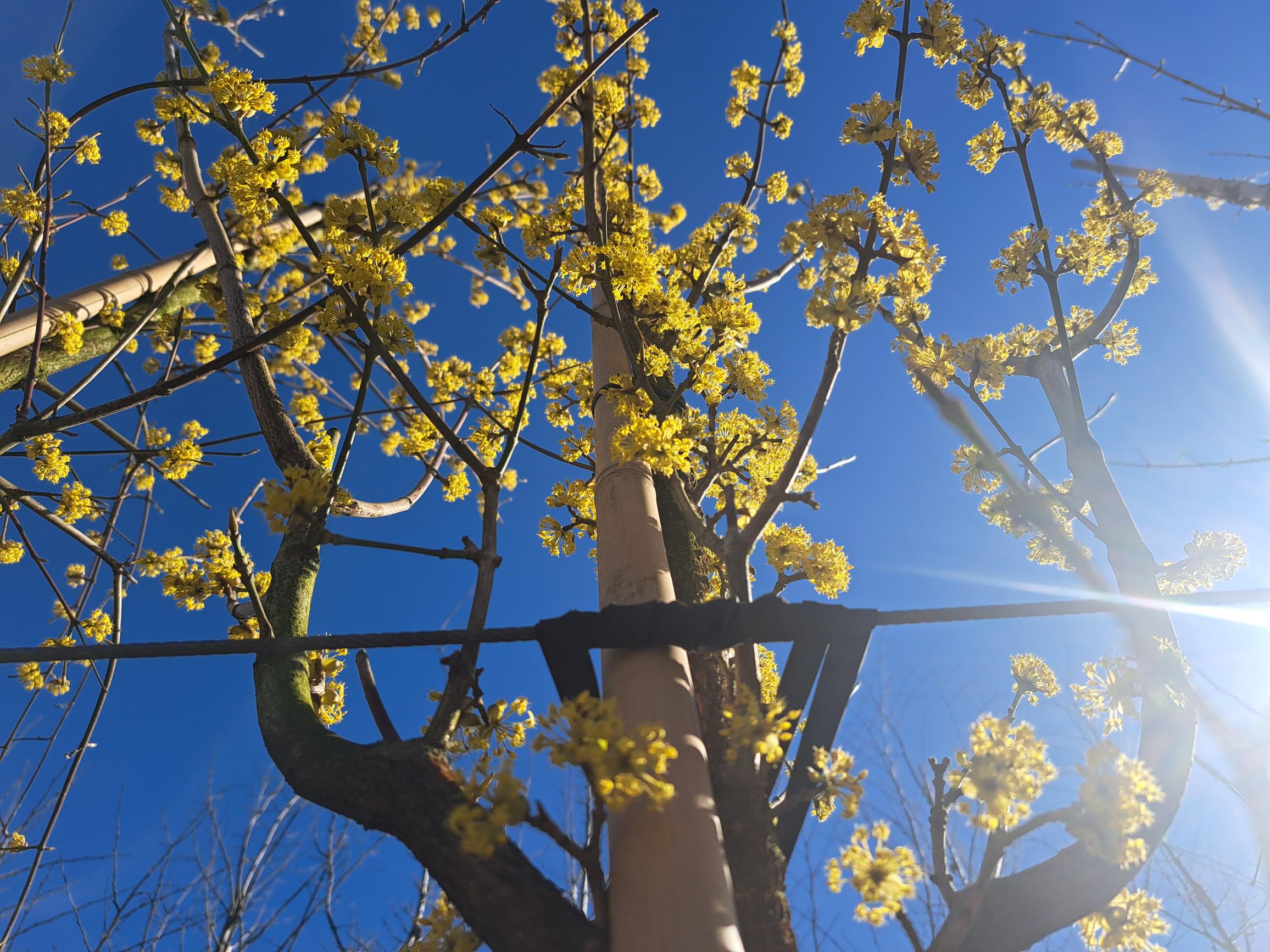 De Cornus Mas (Gele Kornoelje) is een prachtige opvallende gele sierboom. In het vroege voorjaar bloeit de Cornus vóór de bladontwikkeling met helder gele bloemen die al van een verre afstand opvallen. Daarna krijgt de boom glanzend groen blad, wat in de herfst met prachtige herfsttinten er weer af valt. De glanzende rode bessen van de Cornus Mas zijn eetbaar en kunnen gebruikt worden voor sap, salade of jam. De Gele Kornoelje groeit langzaam en wordt niet al te groot.