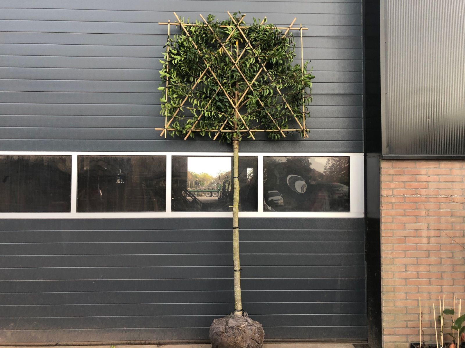 Vanaf stamomtrek 16 cm worden de leibomen geleverd met een leirek van 180cm breed x 150cm hoog.